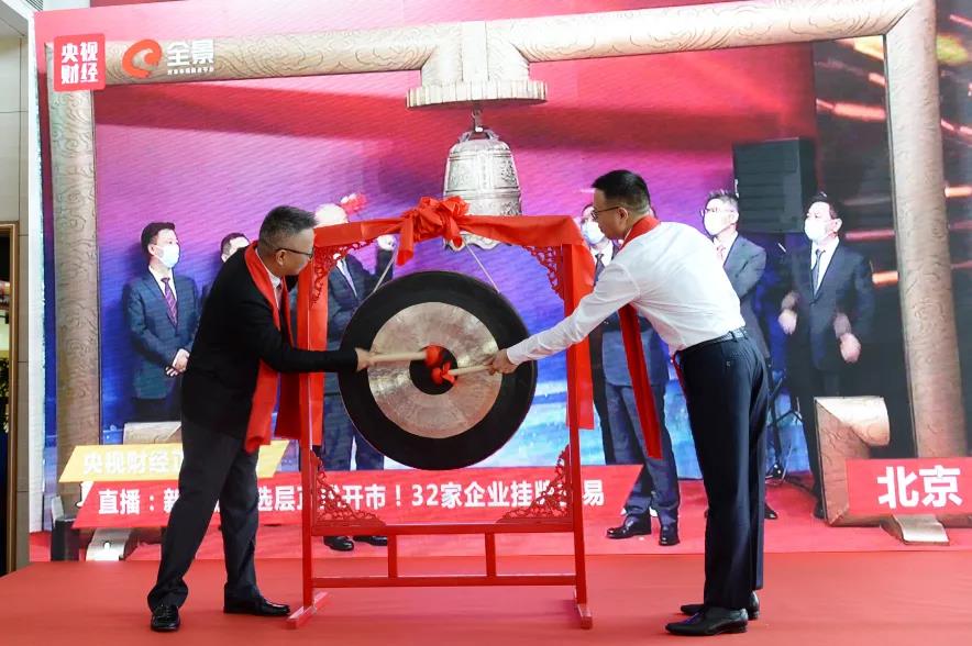 9時(shí)30分,貝特瑞董事長賀雪琴與公司戰(zhàn)略股東華鼎資本董事長熊思危共同登臺,與北京股轉(zhuǎn)中心主會(huì)場同步,一起為精選層開板的首個(gè)交易日鳴鑼開板!